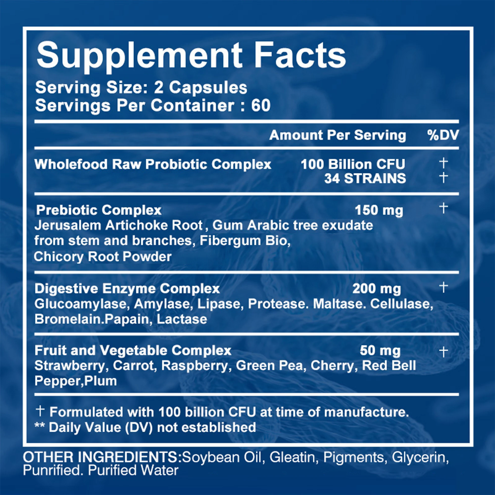 Ingredients: Probiotics, prebiotics, digestive enzymes